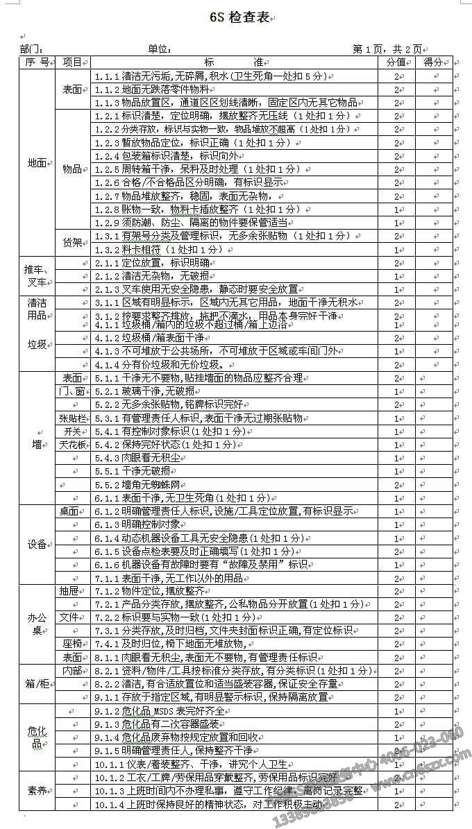企業(yè)6S管理之6S檢查表