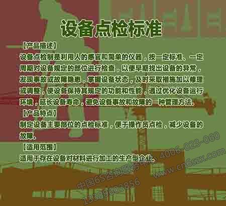 項目:設(shè)備及管線內(nèi)容:1)設(shè)備及管線衛(wèi)生狀況 2)標識情況一級標準:設(shè)備、管道及線路得到清掃。二級標準:有清掃規(guī)范并得到實施。 三級標準:清掃符合規(guī)范,漏油、安全隱患等被發(fā)現(xiàn)并采取措施。 四級標準:管道、線路進行標識,設(shè)備有狀態(tài)標識。五級標準:設(shè)備、管道及線路的衛(wèi)生和標識得到保持。